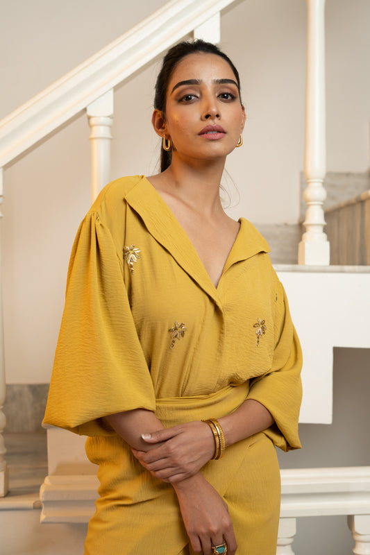 Latte Draped Dress - Mustard