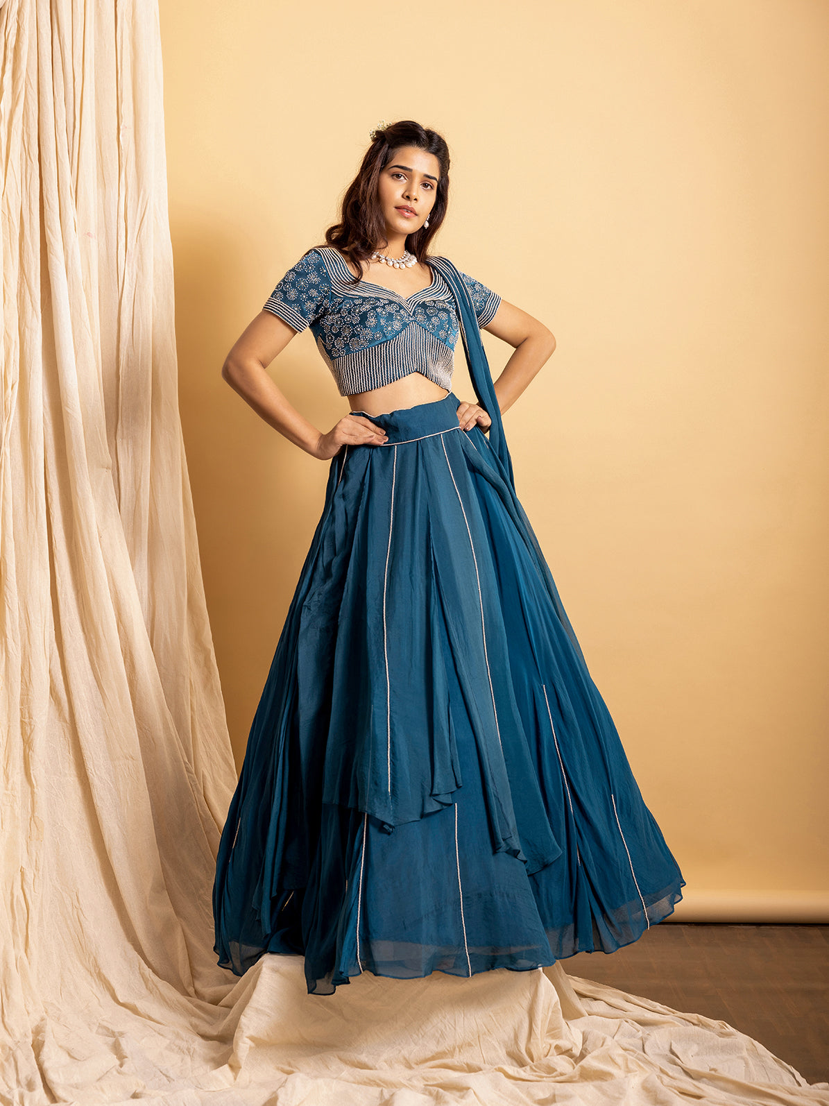 Elysian - Organza Layered Lehenga with Embroidered Blouse and Choker Dupatta