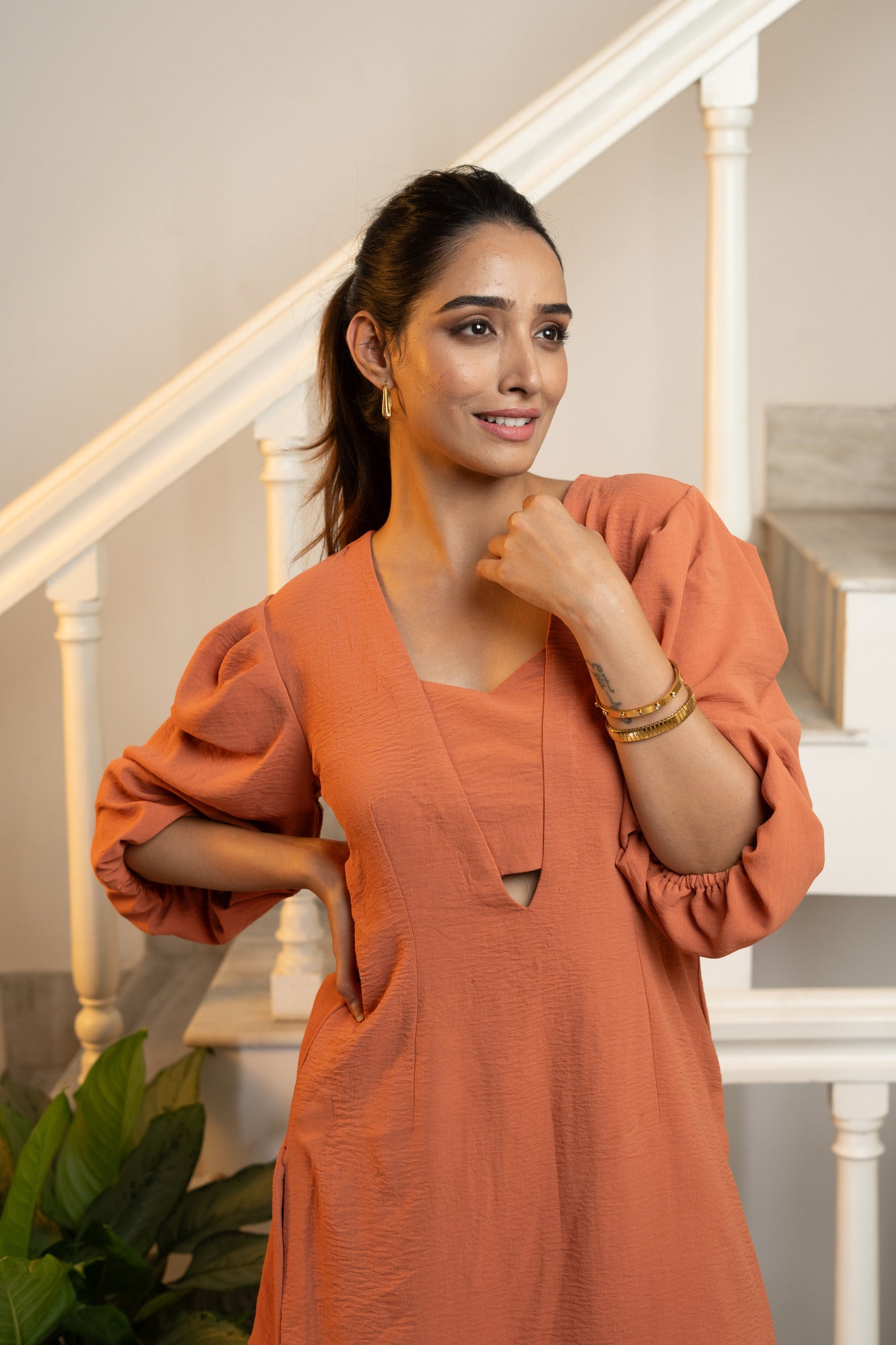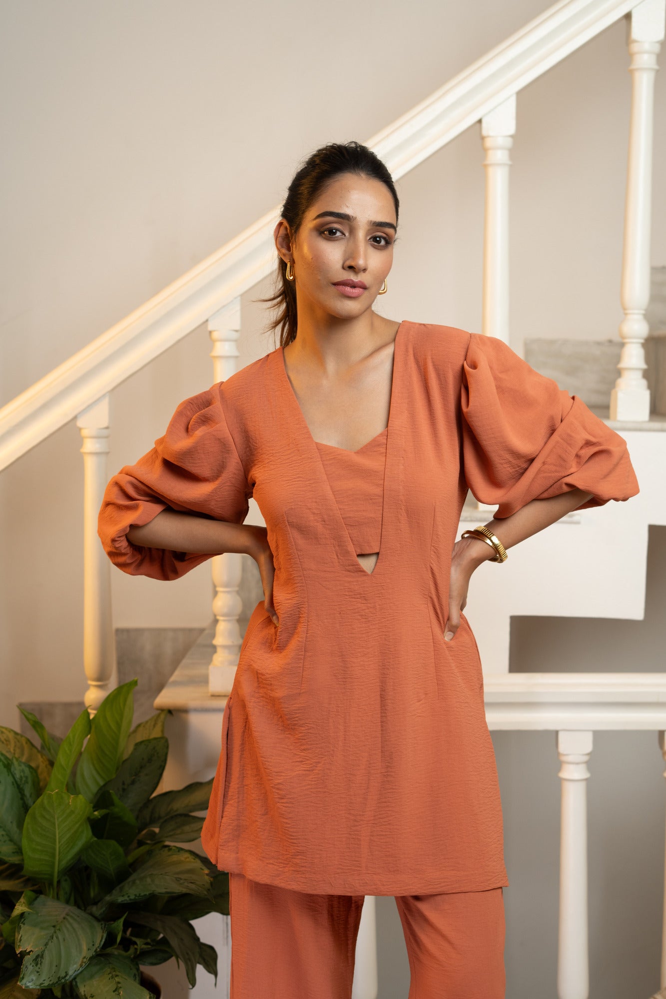 Latte Tunic Co-ord Set - Rust Orange